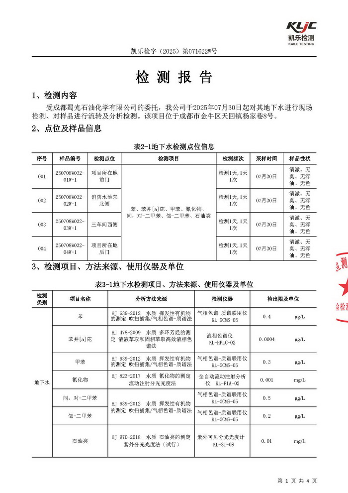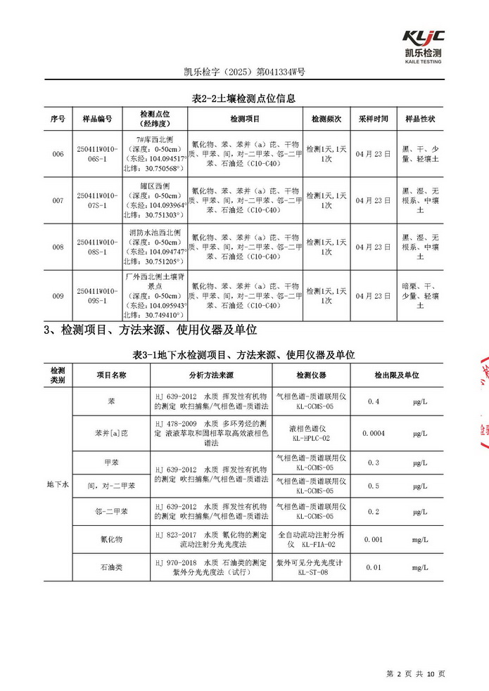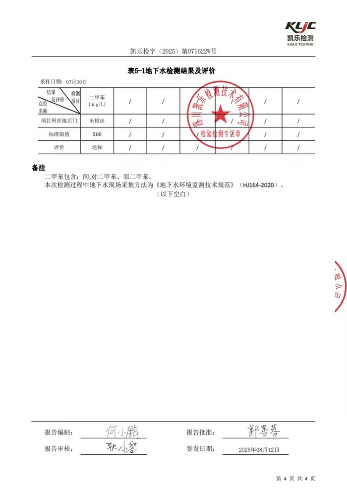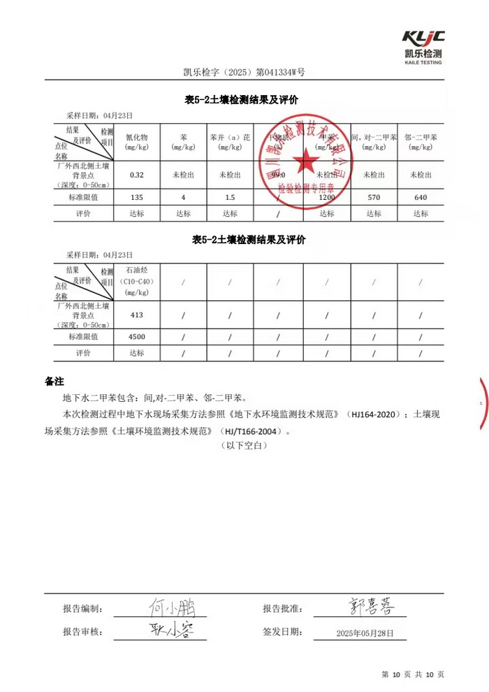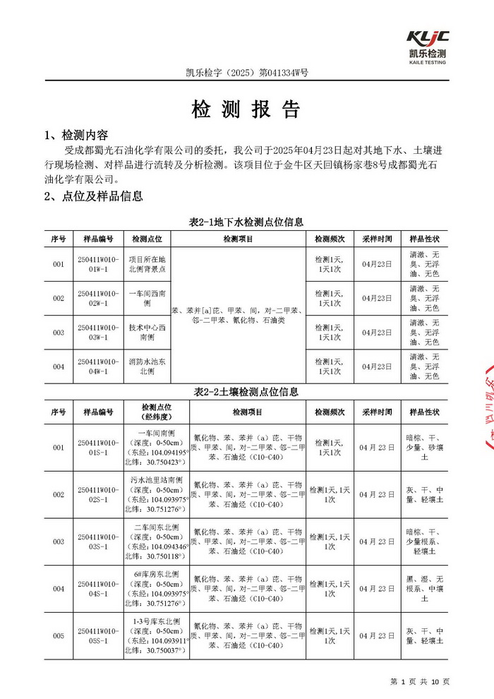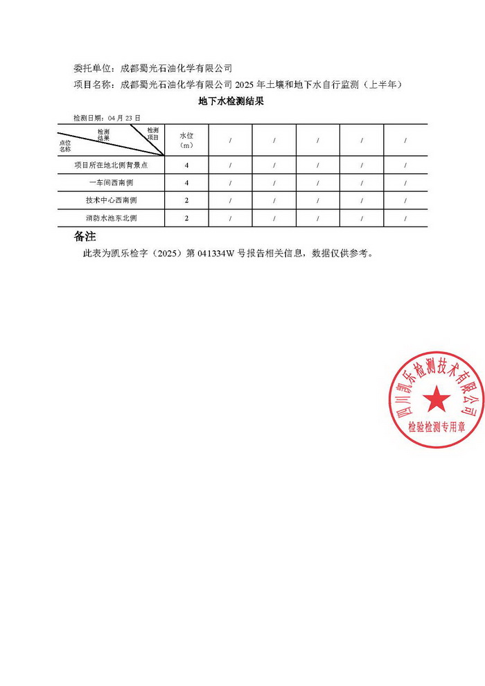 公司2025年土壤及地下水检测报告